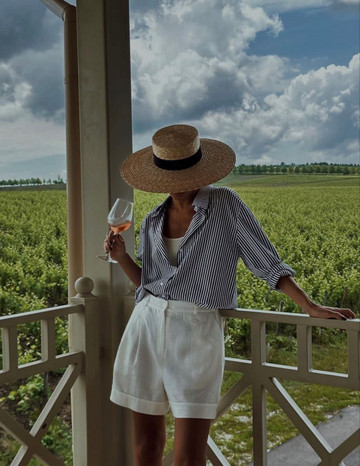Για πιο κομψές περιστάσεις, ένα καπέλο με φαρδύ γείσο μπορεί να προσθέσει αμέσως μια αίσθηση πολυτέλειας, ειδικά όταν συνδυάζεται με μονόχρωμα outfits και μεγάλα γυαλιά ηλίου.