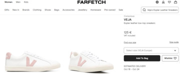 Η ίδια είναι μεγάλη φαν του sustainable γαλλικού brand υποδημάτων, Veja Sneakers καθώς σε πολλές περιστάσεις, επιλέγει τα άνετα sneakers της εταιρείας. Συγκεκριμένα, έχει επιλέξει το μοντέλο Veja’s Esplar Leather Sneakers σε άσπρο χρώμα με την rose-gold λεπτομέρεια και τα φοράει από το 2021.