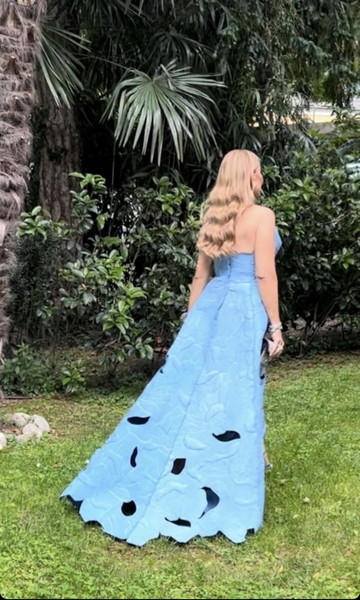 Συγκεκριμένα επέλεξε ένα γαλάζιο strapless gown, το οποίο ξεχώριζε χάρη στα ιδιαίτερα cut-outs του σε floral σχήμα.