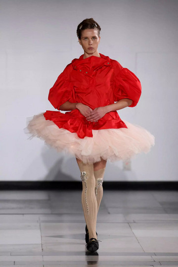 Από την άλλη, ο οίκος Simone Rocha παραμένει πιστός στις ρίζες της tutu φούστας, με τούλι. Προτείνει λοιπόν αιθέριες και ρομαντικές σύγχρονες σιλουέτες.