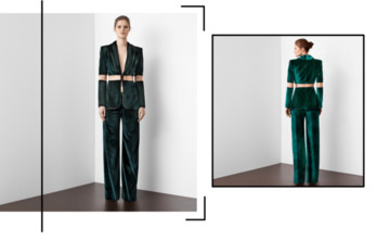 Ο δημιουργός πήρε ως κυρίαρχο υλικό το μεταξωτό βελούδο, ένα ύφασμα που πάντα συνδεόταν με κάτι το πιο βασιλικό και επιβλητικό, ενώ κάθε άλλο ύφασμα της συλλογής κινείται με σκοπό να δικαιώσει την αγάπη για το γυναικείο σώμα, αγκαλιάζοντάς το σε μία μοντέρνα vintage αισθητική. Το ανέκαθεν girly φούξια εμφανίζεται σε μία πιο αναβαθμισμένη, «ζεστή» απόχρωση και στέκεται δίπλα στο κυπαρισί και το μπλε εκφράζοντας ξεχωριστά τη δυναμική του καθενός.