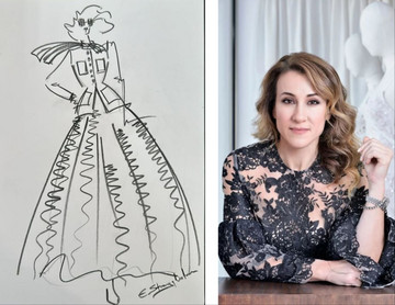 «O Karl Lagerfeld, είναι για μένα μια προσωπικότητα που καθόρισε με το δικό του ξεχωριστό τρόπο την πορεία της μόδας. Το σκίτσο που έχω δημιουργήσει είναι εμπνευσμένο από τη γεμάτη δυναμισμό προσωπικότητα του, το εμβληματικό tailored jacket του οίκου Chanel, του οποίου υπήρξε Καλλιτεχνικός Διευθυντής, και φυσικά από τα χαρακτηριστικά μαύρα γυαλιά που δεν αποχωριζόταν ποτέ ο Karl Lagerfeld. Μέσα από το σχέδιο μου συνδύασα όλα αυτά τα στοιχεία, με τις φούστες της νέας bridal συλλογής Elena Stongyliotou»