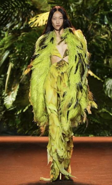 Ο οίκος Roberto Cavalli, από την άλλη πόνταρε στον μαξιμαλισμό με τα animal prints που αποτελούν χαρακτηριστικό στοιχείο της ταυτότητας τού, σέξι φορέματα και λεπτομέρειες από φτερά που πρόσδιδαν μια εξωτική πινελιά.