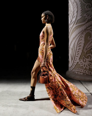Στο ίδιο μήκος κύματος κινήθηκε και η Alberta Ferretti αλλά χρησιμοποιόντας πιο γήινους τόνους και χρησιμοποιώντας περισσότερο σέξι cut-outs για να δώσει έμφαση στη θηλυκότητα