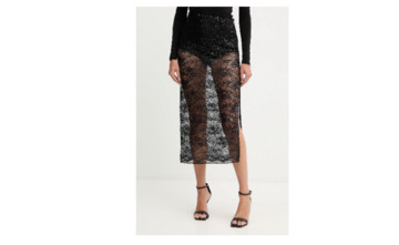 Η δαντελένια φούστα της Patrizia Pepe είναι μια ωδή στη θηλυκότητα και τη λεπτή πολυτέλεια. Με το ημιδιάφανο ύφασμά της να παίζει με το φως και την υφή, μεταμορφώνεται από fashion statement σε αντικείμενο τέχνης. Όταν δεν χορεύει γύρω από το σώμα, μπορεί να γίνει ένα glamorous φουλάρι που τυλίγεται στους ώμους ή ένα αέρινο διακοσμητικό στοιχείο στο σπίτι, υπενθυμίζοντας ότι η κομψότητα δεν περιορίζεται ποτέ σε έναν μόνο ρόλο.