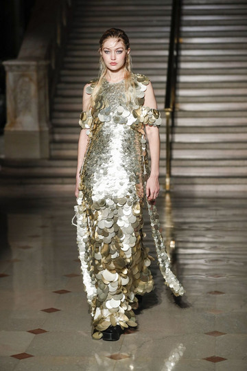 Μαξιμαλιστική βέβαια ήταν και η κολεξιόν Altuzzara, με τα τεράστια sequins που έντυναν τις δημιουργίες του brand, οι οποίες ήταν εμπνευσμένα από τα μυθικά πλάσματα, τις γοργόνες.