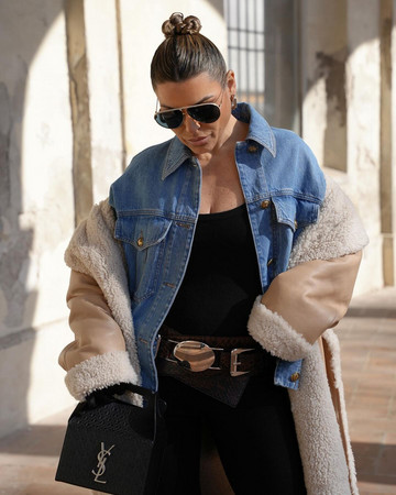 Συγκεκριμένα, η Ντία Αρίστου η οποία ταξίδεψε στο Μιλάνο για την Εβδομάδα Μόδας, επέλεξε να φορέσει το αγαπημένο jacket της άνοιξης, το denim το οποίο συνδύασε με ένα μαύρο wide-leg παντέλονι. Για να αντιμετωπίσει ωστόσο το κρύο, έφαρμοσε το double-coat τρικ. Φόρεσε δηλαδή πάνω από το denim jacket της ακόμη ένα παλτό.