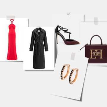 Red Glamour: Αυτό το εντυπωσιακό σύνολο αποπνέει κομψότητα και φινέτσα. Το κόκκινο μάξι φόρεμα αγκαλιάζει τη σιλουέτα με απόλυτη θηλυκότητα, ενώ οι γόβες σε βαθιά κόκκινη απόχρωση και η ασορτί τσάντα προσθέτουν μια δυναμική μονοχρωματική συνέχεια στο look. Το μαύρο παλτό, με την κομψή και κλασική του γραμμή, προσφέρει την τέλεια αντίθεση, δημιουργώντας ένα σύνολο που αποπνέει πολυτέλεια. Τα χρυσά σκουλαρίκια με κόκκινες λεπτομέρειες ολοκληρώνουν τη glamorous εικόνα, προσθέτοντας λάμψη και ισορροπία. Είναι το ιδανικό look για βραδιές που απαιτούν εκλεπτυσμένο στυλ και αυτοπεποίθηση.