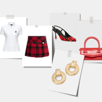 Plaid Perfection: Αυτό το look παίζει με τον κλασικό συνδυασμό του κόκκινου καρό και του λευκού, δημιουργώντας ένα φρέσκο και νεανικό outfit. Η κόκκινη καρό μίνι φούστα συνδυάζεται αρμονικά με το λευκό polo shirt, προσδίδοντας μια σπορτίφ αλλά ταυτόχρονα chic αίσθηση. Οι κόκκινες καρό γόβες ενισχύουν την ένταση του συνόλου, ενώ η κόκκινη τσάντα προσθέτει μια πινελιά κομψότητας και ολοκληρώνει το look με φινέτσα. Τα χρυσά σκουλαρίκια δίνουν την απαραίτητη λάμψη, προσθέτοντας έναν διακριτικό αλλά εντυπωσιακό τόνο. Ιδανικό για casual chic εμφανίσεις με μια δόση δυναμισμού.