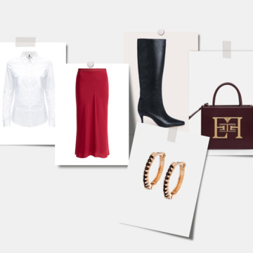 Classic Sophistication: Η λευκή πουκαμίσα, κομψή και καλοραμμένη, συνδυάζεται αρμονικά με τη μακριά κόκκινη φούστα, προσθέτοντας μια αίσθηση ρομαντισμού και διαχρονικής θηλυκότητας. Τα μαύρα δερμάτινα knee-high μποτάκια αναδεικνύουν το look με μια τολμηρή και σύγχρονη πινελιά. Η τσάντα σε βαθιά μπορντό απόχρωση με το εμβληματικό λογότυπο προσθέτει μια αίσθηση πολυτέλειας, ενώ τα χρυσά σκουλαρίκια με μαύρες λεπτομέρειες ολοκληρώνουν το σύνολο, δίνοντας την απαραίτητη λάμψη και ισορροπία. Αυτό το look είναι ιδανικό για επαγγελματικές ή πιο επίσημες περιστάσεις, όπου η κομψότητα συνδυάζεται με την προσωπική έκφραση.