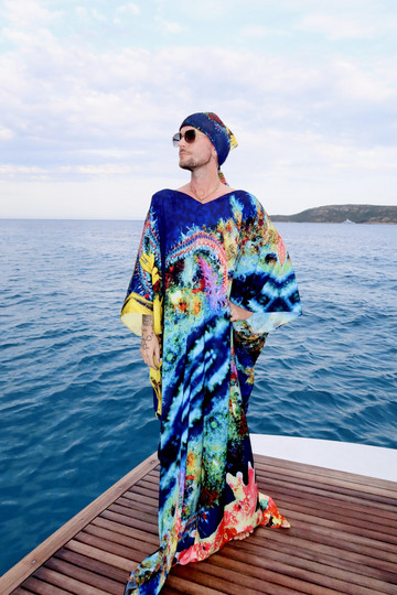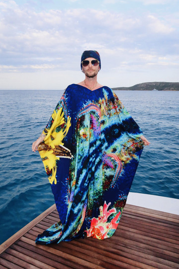 Αυτό το βιώσιμο καφτάνι συνδυάζει τη σύγχρονη μόδα με την ποιητική κομψότητα της κυπριακής φύσης. Πρόσφατα, το φόρεσε ο γνωστός συλλέκτης υψηλής ραπτικής Fredrik Robertson σε γιοτ στη Κορσική, Γαλλία, συνδυάζοντας τέχνη, μόδα, βιωσιμότητα και ταξίδι σε μια μοναδική οπτική εμπειρία.