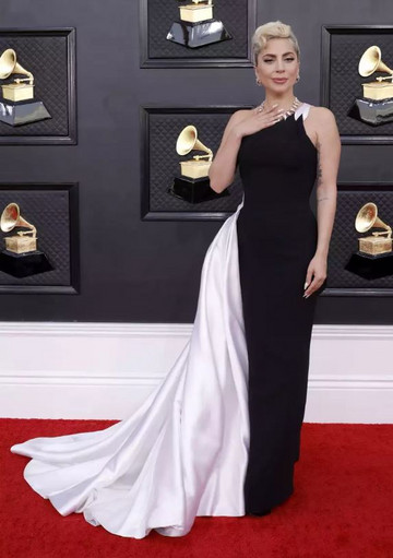 H Lady Gaga με ένα σέξι μαυρόασπρο off-the-shoulder φόρεμα, από Αrmani Prive και hair-style και makeup που θύμιζε old Hollywood.