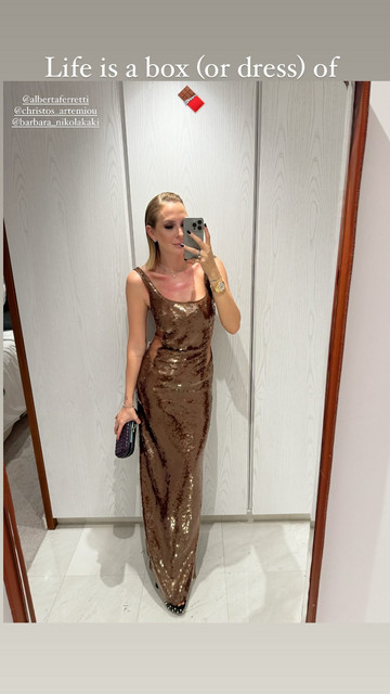 Εντυπωσιακή με sequined φόρεμα Albeta Ferretti (όπως και η επιλογή της Τερέζας Ηλιάδη για την εκκλησία) ήταν και η Σύλβια Μαυροπούλου