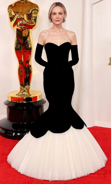 Η Carey Mulligan με custom mermaid φόρεμα από τον οίκο Balenciaga σε μαυρόασπρο χρώμα