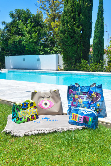 Μεγάλες, με εντυπωσιακά χρώματα, στάμπες και παιχνιδιάρικα prints… Αυτά είναι τα κύρια χαρακτηριστικά των τσαντών θαλάσσης “Blue Turtle”, τα οποία αποτυπώνει στην κάθε μια από αυτές με έναν μοναδικό τρόπο η Πόλυ Χατζηγεωργίου!