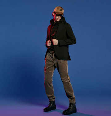 Ανδρικό: Επέλεξε ένα παντελόνι σε slouchy γραμμη, συνδύασε το με το logoed φούτερ σου και ένα cap και αναβάθμισε το look σου, σε smart casual με ένα μαύρο blazer jacket και μάυρα μποτάκια.