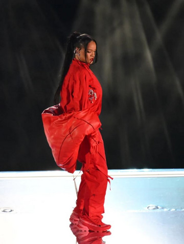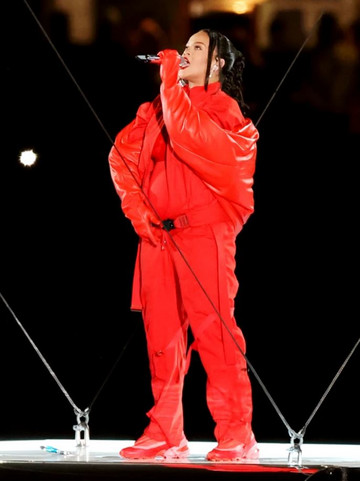 Αυτή τη φορά το έκανε με ένα πιο επικό τρόπο, ανέβηκε στη σκηνή του Super Bowl φορώντας μία custom ολόσωμη φόρμα Loewe με ένα sculpture bustier κορμάκι από μέσα, που πρόδιδε την εγκυμοσύνη της.