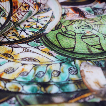 Το σχέδιο βασίζεται σε αυθεντικό αντικείμενο της συλλογής του Μουσείου Πιερίδη, ενός από τα σημαντικότερα ιδιωτικά μουσεία της Κύπρου, αφιερωμένου στη διαφύλαξη και ανάδειξη της πολιτιστικής κληρονομιάς του νησιού. Ο Παντελίδης μετέτρεψε τα αιώνων μοτίβα των κεραμικών σε ένα σύγχρονο μεταξωτό κομμάτι, συνδυάζοντας την παράδοση με τη σύγχρονη αισθητική.