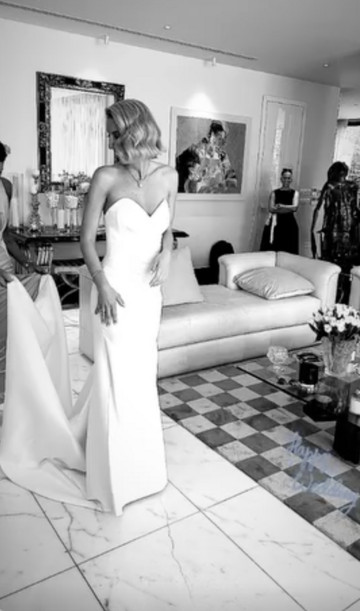Ιδιαίτερη πινελιά στην εμφάνιση της, τα παπούτσια της νύφης, τα οποία άντι για λευκό όπως συνηθίζεται επέλεξε να είναι γαλάζια.