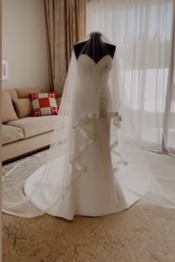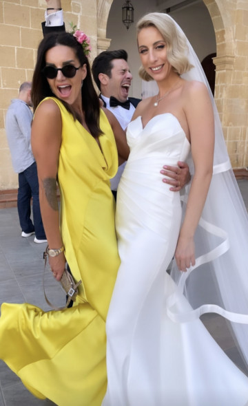 Η Σόλια Κυπριανού για αυτή την ξεχωριστή ημέρα επέλεξε ένα strapless νυφικό, σε mermaid design με μακριά ουρά και ένα μακρύ πέπλο.