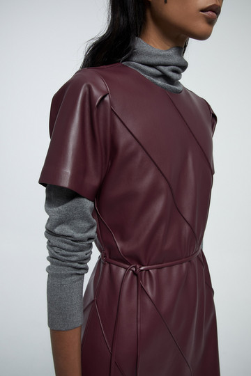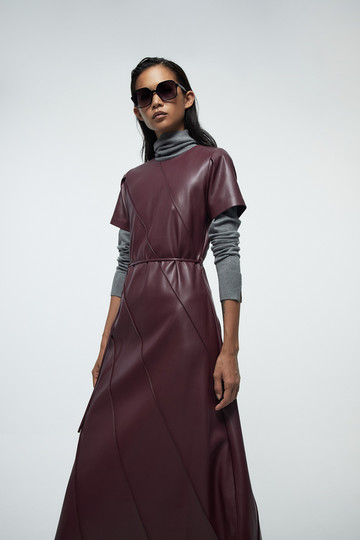 Midi φόρεμα από συνθετικό δέρμα με στρογγυλή λαιμόκοψη.