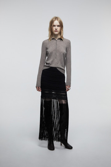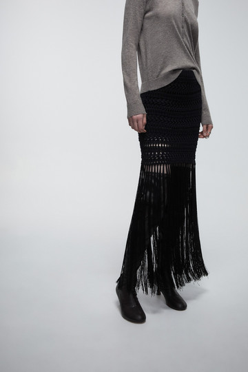 Φούστα με εφαρμοσμένα μακριά κρόσσια και ελαστική μέση.