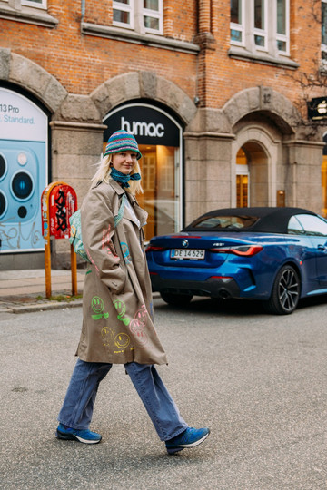 Τα ρούχα που κυριαρχούν στους δρόμους της Δανίας είναι τα χρωματιστά τα puffer jackets, τα μάξι παλτό, τα slouchy και τα baggy παντελόνια. Αυτό όμως που διακρίναμε είναι ότι το workwear style απέκτησε πιο έντονες oversized και άνετες σιλουέτες με το cargo παντελόνι να επικρατεί στα περισσότερα looks.