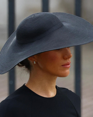 H Meghan Markle, προτίμησε για την εμφάνιση της ένα μαύρο cape dress της σχεδιάστριας Stella Mccartney και ένα μίνιμαλ μεγάλο καπέλο.