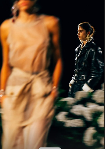 Στο εμβληματικό σκηνικό δίπλα στον Πύργο του Άιφελ, στην καρδιά της γαλλικής πρωτεύουσας, το κοινό έγινε μάρτυρας μιας επίδειξης που ένωσε την αυστηρότητα της αρχιτεκτονικής με τον αέρα της κίνησης, προσφέροντας ένα αποτέλεσμα που κινείται ανάμεσα στη γλυπτική τέχνη και την υψηλή ραπτική.