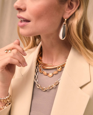 Είτε επιλέξεις ένα διακριτικό choker είτε statement σκουλαρίκια, η συλλογή σε προσκαλεί να πειραματιστείς και να εκφράσεις το προσωπικό σου στυλ.