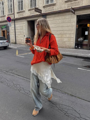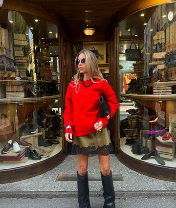 1. Layering με πουλόβερ ή ζακέτα: Φόρεσε ένα πουλόβερ, ιδανικά σε έντονο χρωματισμό πάνω από το φόρεμα, για να δημιουργήσεις διαφορετικές αναλογίες και να προσθέσεις cozy στοιχεία στο look. Για να το κάνεις ακόμη πιο stylish, σου προτείνω να παίξεις με τα χρώματα και κάνεις colour blocking. Με αυτό τον τρόπο, το σύνολο σου θα είναι πιο trendy και παιχνιδιάρικο και δεν θα μοιάζει καθόλου στην βαρετή πολυφορεμένη εικόνα που κυκλοφορεί στα social media.