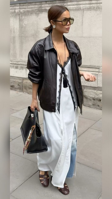 Για εσάς που έχετε πιο ροκ διάθεση σας έχω την λύση. Leather Jacket, το item αυτό, αναπόσπαστα αποτελεί την πιο stylish και safe επιλογή. Άφησε το viral φόρεμα να μιλήσει από μόνο του, χωρίς να το υπερφορτώνεις με στοιχεία, τα οποία στο τέλος μπορούν να σου φέρουν το αντίθετο αποτέλεσμα. Η Κωνσταντίνα Ευριπίδου μας αποδυκνύει την έννοια του “less is more” δημιουργώντας τo πιο διαχρονικό και παράλληλα fashionable look.