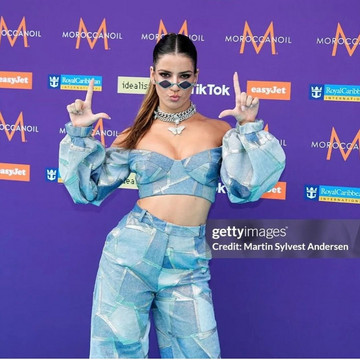 Και η Σήλια και η Μαρίνα, πόνταραν σε total denim εμφανίσεις! Πρώτα, η Σήλια Καψής εμφανίστηκε με ένα denim σετ, crop top και παντελόνι με διάφορα μοτίβα και αποχρώσεις, δημιουργία του Κύπριου σχεδιαστή, Στέλιου Κουδουνάρη.