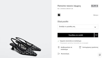Είναι ημιδιαφανές στο μπροστινό μέρος, με γυαλιστερά διακοσμητικά απλικέ και χαλημό τακούνι. Η τιμή τους ανέρχεται στα 55,99€ και χωρίς καμιά αμφιβολία είναι τα ιδανικά παπούτσια για την επιστροφή στο γραφείο.