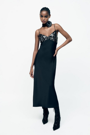 Εναλλακτικά, αν δεν θες ένα all-over sequin φόρεμα, μπορείς να επιλέξεις ένα camisole φόρεμα με λαμπερές λεπτομέρειες στο στήθος. Το κόστος του φορέματος ανέρχεται στα 49.95 EUR
