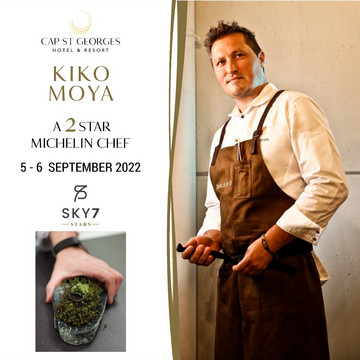 Ο Ισπανός σεφ, Kiko Moya, με καταγωγή από το Αλικάντε, κάτοχος δυο αστεριών Michelin θα οδηγήσει όσους τυχερούς βρεθούν στο εστιατόριο Sky7 του Cap St Georges Hotel & Resort στις 5 και 6 Σεπτεμβρίου σε ένα ανεπανάληπτο ταξίδι γεύσεων.