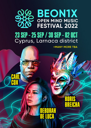 Το BEON1X Festival θα πραγματοποιηθεί για δύο συνεχόμενα Σαββατοκύριακα, απ’τις 23 μέχρι 25 Σεπτεμβρίου 2022 κι απ’τις 30 Σεπτεμβρίου μέχρι 2 Οκτωβρίου 2022, φέρνοντας στην Κύπρο μια απαράμιλλη μουσική σκηνή από DJs παγκόσμιας κλάσης που έχουν εμφανιστεί στα μεγαλύτερα διεθνή μουσικά φεστιβάλ όπως το Tomorrowland, Ultra, και που είναι μόνιμοι DJs των πιο δημοφιλών μουσικών κλαμπ της Ίμπιζα. Το BEON1X Festival κάνει το ντεμπούτο του συνδυάζοντας την techno μουσική, την τέχνη, την ελευθερία, στη πανέμορφη φυσική ομορφιά της Κυπριακής παραλίας. Η ομάδα του BEON1X παρουσιάζει επίσης τους πιο υποσχόμενους, ανερχόμενους Κύπριους και Έλληνες DJs.