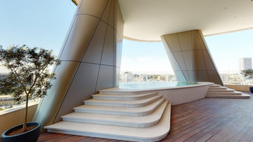Μέσα από το 3D virtual tour του 360, οι χρήστες μπορούν να δουν το εντυπωσιακό Lobby και τον πολυχώρο στον 10ο όροφο, ο οποίος διαθέτει γυμναστήριο με απρόσκοπτη θέα προς τον Πενταδάκτυλο, σάουνα και steam bathμε ευρύχωρα αποδυτήρια, Residents Club, με bar και την εντυπωσιακή και υπερυψωμένη πισίνα με “πιάτο” τη Λευκωσία.