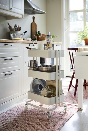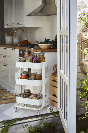 Οργανώστε τον χώρο της κουζίνας σας με πρακτικές λύσεις που θα σας βοηθήσουν να δημιουργήσετε αξέχαστα γεύματα χωρίς κόπο. Χρησιμοποιήστε το τρόλεϊ RÅSKOG για να έχετε δίπλα σας τα τρόφιμα που χρειάζεστε ανά πάσα στιγμή και τοποθετήστε τη ράγα με άγκιστρα HÖVOLM για να μεγιστοποιήσετε και να αξιοποιήσετε όλο τον διαθέσιμο χώρο στην κουζίνα σας. Για τα συρτάρια, επιλέξτε να οργανώσετε τα μπαχαρικά σας στα γυάλινα βάζα της σειράς RAJTAN, ώστε να μπορείτε να τα βρίσκετε γρήγορα.