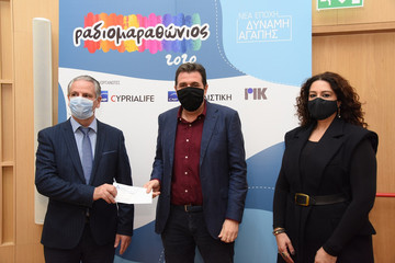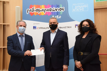Σε μια λιτή εκδήλωση που πραγματοποιήθηκε στο αμφιθέατρο του Ομίλου CNP το πρωί της Δευτέρας 7 Δεκεμβρίου, ο Πρώτος Εκτελεστικός Διευθυντής του Ομίλου κ. Τάκης Φειδία υποδέχθηκε, μαζί με την κυρία Μαρία Χριστοφίδου, μέλος του Διοικητικού Συμβουλίου του Ραδιοφωνικού Ιδρύματος Κύπρου, και την κυρία Άντρη Καλλιμάχου, Γενική Διευθύντρια της CNP CYPRIALIFE και Προέδρου του Συντονιστικού Επιτελείου Ραδιομαραθώνιου, τους εκπροσώπους της πολιτειακής και πολιτικής ηγεσίας του τόπου οι οποίοι έδωσαν για ακόμη μία χρονιά το παρών και την οικονομική στήριξή τους στον Ραδιομαραθώνιο 2020. Ο Πρώτος Εκτελεστικός Διευθυντής του Ομίλου CNP, εκ μέρους των διοργανωτών του Ραδιομαραθώνιου 2020, ευχαρίστησε όλους όσους τίμησαν με την παρουσία τους την εκδήλωση αναφέροντας ότι η μακροχρόνια προσφορά τους στον θεσμό αυτού του μεγάλου φιλανθρωπικού έργου είναι πολύτιμη και ιδιαίτερα σημαντική στην επιτυχία αυτής της προσπάθειας.