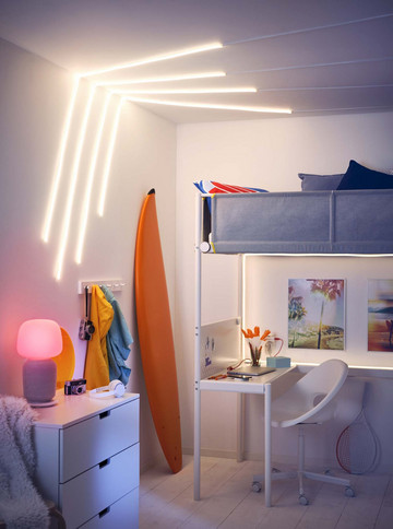 Για τις ανάγκες όλων των χώρων του σπιτιού, η ΙΚΕΑ προτείνει «έξυπνες» ιδέες, σε συνδυασμό με την εφαρμογή «IKEA Home Smart» για ανανέωση σε φωτισμό, ήχο αλλά και ασύρματο έλεγχο. Η ράγα φωτισμού LED MYRVARV είναι εξαιρετικά ευέλικτη επιλογή, αφού μπορεί να κοπεί στο μέγεθος που επιθυμείτε και να λυγίσει γύρω από τις γωνίες, ενώ μπορείτε να ρυθμίσετε το φως της με το ασύρματο τηλεχειριστήριο ή την εφαρμογή «IKEA Home Smart», για επιπλέον δυνατότητες. Παράλληλα, με το σετ ελέγχου πρίζας TRÅDFRI μπορείτε να συνδέσετε οποιοδήποτε φωτιστικό, την καφετιέρα σας ή όποια άλλη οικιακή συσκευή και να την ενεργοποιήσετε/ απενεργοποιήσετε από απόσταση. Το επιτραπέζιο φωτιστικό SYMFONISK με Wi-Fi ηχείο ολοκληρώνει αρμονικά τις προτάσεις της ΙΚΕΑ για ένα «έξυπνο σπίτι». Σας επιτρέπει να ακούτε μουσική ή ραδιόφωνο και να ελέγχετε το ηχείο με την εφαρμογή Sonos, η οποία είναι διαθέσιμη στο Google Play ή το App Store, ανάλογα με τη συσκευή που έχετε.