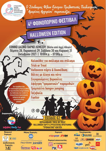 Είστε έτοιμοι για Trick or Treat?! Το 4o Φθινοπωρινό Φεστιβάλ – Halloween Edition, by Inspired Family Fun έρχεται και πάλι κοντά μας για ένα μοναδικό 4-ήμερο την Πέμπτη 28, Παρασκευή 29, Σάββατο 30 και Κυριακή 31 Οκτωβρίου 2021 στο ωραιότερο πάρκο της πόλης, το Δασικό Πάρκο Λεμεσού.