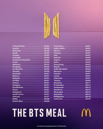 Από το 2013, το συγκρότημα έχει κατακτήσει κορυφαία μουσικά charts και έχει φέρει κοντά ανθρώπους απ’ όλο τον κόσμο, μέσω της μουσικής και των θετικών μηνυμάτων του. Σε μερικούς μήνες, οι fans τους θα έχουν την ευκαιρία να βρεθούν πολύ πιο κοντά στους αγαπημένους τους καλλιτέχνες, γιατί για πρώτη φορά το BTS Meal θα είναι διαθέσιμο παγκοσμίως σε σχεδόν 50 χώρες.