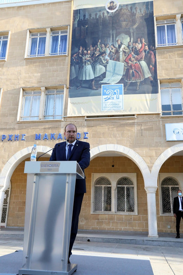 Εγκαινιάζοντας την έκθεση ο κ. Πετρίδης συνεχάρη θερμά το Πολιτιστικό Ίδρυμα Τράπεζας Κύπρου, το Ίδρυμα Σύλβιας Ιωάννου και τον Δήμο Λευκωσίας, καθώς και όλους όσοι συνέβαλαν στη πραγματοποίησή της, τονίζοντας πως «με την ευκαιρία της συμπλήρωσης 200 χρόνων από την Ελληνική Επανάσταση, εύχομαι χρόνια πολλά στον Ελληνισμό: στην Ελλάδα, την Κύπρο, τους ομογενείς και τους απόδημους Έλληνες σε όλο τον κόσμο». Όπως τόνισε ο Υπουργός Άμυνας της Κύπρου «οι ακατάλυτοι δεσμοί μεταξύ της Κύπρου και της Ελλάδας αποτελούν πυξίδα για την κοινή μας πορεία για το μέλλον. Η φλόγα της ελευθερίας και οι θυσίες των ηρώων ας είναι ο οδηγός για ένα καλύτερο αύριο».