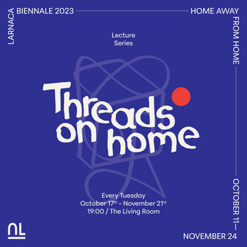 Το Threads on Home είναι μια εβδομαδιαία σειρά διαλέξεων, υπό την επιμέλεια της Yev Kravt. Οι διαλέξεις θα επικεντρώνονται γύρω από τη θεματική ‘Ηome Away from Home’ και θα πραγματοποιούνται κάθε Τρίτη στις 19:00 στο The Living Room στην πλατεία Αγίου Λάζαρου στη Λάρνακα. Με διαφορετικό καλεσμένο ομιλητή κάθε φορά, οι διαλέξεις θα ξετυλίγουν τις πέντε διαφορετικές θεματικές που αντιπροσωπεύει η κάθε εβδομάδα (Ψυχολογία, Περιβάλλον, Αρχιτεκτονική και Σχεδιασμός, Φιλοσοφία και Διάστημα και Τεχνολογία). Q&A θα ολοκληρώνουν τη κάθε εκδήλωση.