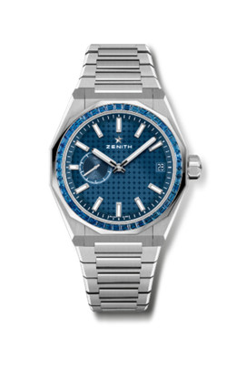Key points: El Primero 3-hand watch. High frequency indication: 1/10th of a second subdial at 9 o’clock. Silicon escape-wheel and lever. Starry sky pattern on the dial. Screwed-in crown. Full Interchangeable strap system.