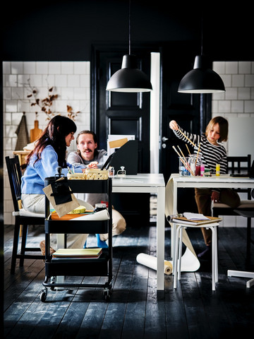 Τι γίνεται όμως σε περίπτωση που χρειάζεται κάτι επιπλέον, είτε σε κάθισμα είτε σε αποθηκευτικό χώρο; Με τα σκαμπό MARIUS εξασφαλίζουμε παραπάνω θέσεις και μόλις αυτά ολοκληρώσουν την αποστολή τους, στοιβάζονται εύκολα και απλά σε μια γωνία του δωματίου. Παράλληλα, εφεδρικά ποτήρια, πιάτα και μαχαιροπίρουνα, αλλά και πετσέτες κουζίνας που ίσως χρειαστούν, αποθηκεύονται και μετακινούνται ευέλικτα στον χώρο με ένα τρόλεϊ RASKOG.