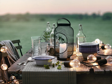 Για ένα όμορφο σκηνικό στο μπαλκόνι οι γιρλάντες φωτισμού LED της IKEA είναι ιδανικές. Συνδυάζονται με πολλά διαφορετικά διακοσμητικά που αλλάζουμε όποτε θέλουμε ανάλογα με το στιλ, την εποχή και τη διάθεσή μας. Χρησιμοποιούνται σε εσωτερικό και εξωτερικό χώρο, τοποθετούνται εύκολα σε όποιο σημείο θέλουμε να αναδείξουμε – κατά μήκος του μπαλκονιού ή σε σειρές, ανάμεσα στις γλάστρες μας.