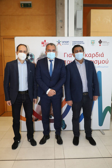 Ο κύριος Υπουργός ανέφερε ότι κάθε χρόνο στην Ευρώπη καταγράφονται γύρω στις 275 χιλιάδες αιφνίδιες καρδιακές ανακοπές εκτός νοσοκομείου, συμπεριλαμβανομένου και του αθλητικού χώρου, γεγονός που δεν αφήνει αδιάφορο το Υπουργείο Υγείας. Με σύνθημα «Για την Καρδιά του Αθλητισμού», ο κύριος Υπουργός βεβαίωσε ότι «θα καταβάλουμε κάθε δυνατή προσπάθεια για να ενημερωθούν όλοι στο χώρο του αθλητισμού στους χώρους προπόνησης τους, μέσω των ειδικών προγραμμάτων επιμόρφωσης». Τέλος, ο κύριος Χατζηπαντέλας ευχαρίστησε την ΟΠΑΠ Κύπρου τόσο για τη συμμετοχή της στο συγκεκριμένο πρόγραμμα επιμόρφωσης όσο και για την πολύχρονη, δυνατή στήριξη που παρέχει στο Υπουργείο και γενικό στον τομέα της Υγείας.