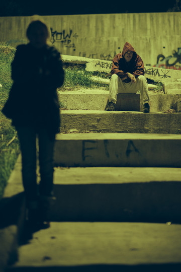 Μια απροσδόκητη συνάντηση. Δύο εντελώς διαφορετικοί άνθρωποι. Και στο βάθος η πόλη. Η ίδια πόλη που βάζει λουκέτο σε κέντρα κοινωνικής βοήθειας, αλλά γεμίζει τα θέατρα μιλώντας γι’ αυτά.